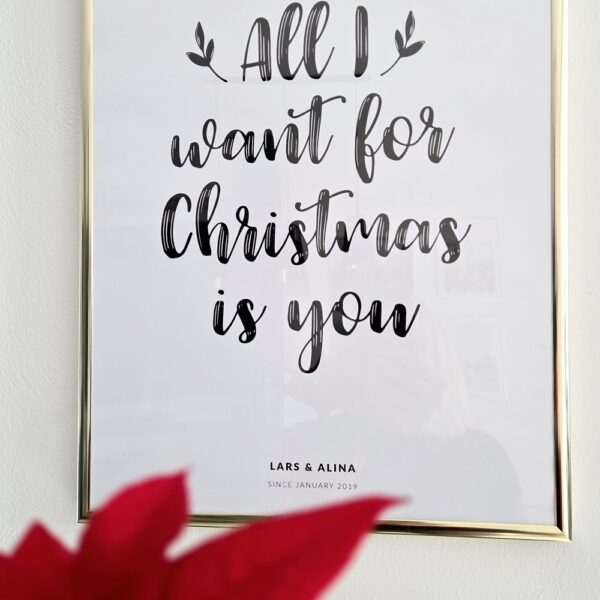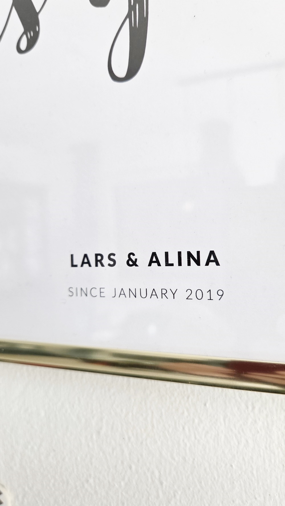 Manche Fotos kann man sogar personalisieren und so noch mehr Persönlichkeit in die Dekoration stecken. Bei diesem Poster hat meine Tochter ihren und den Namen ihres Freundes inkl. ihrem Datum aufdrucken lassen. Ich finde das eine richtig süße Idee.