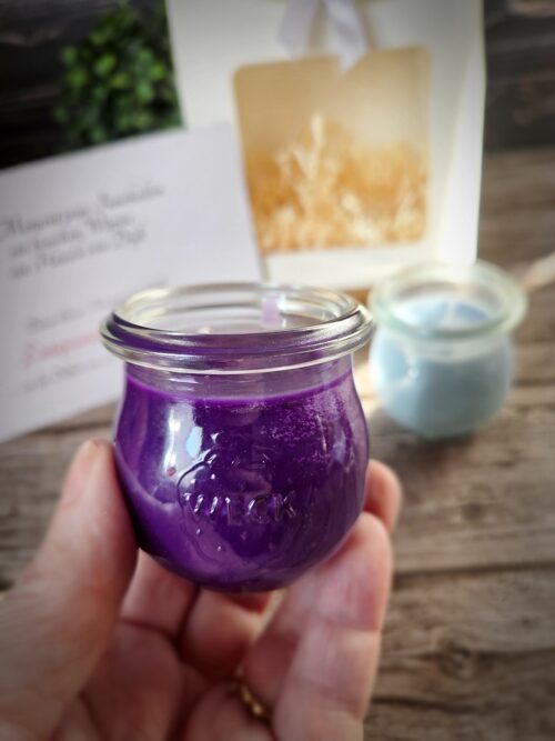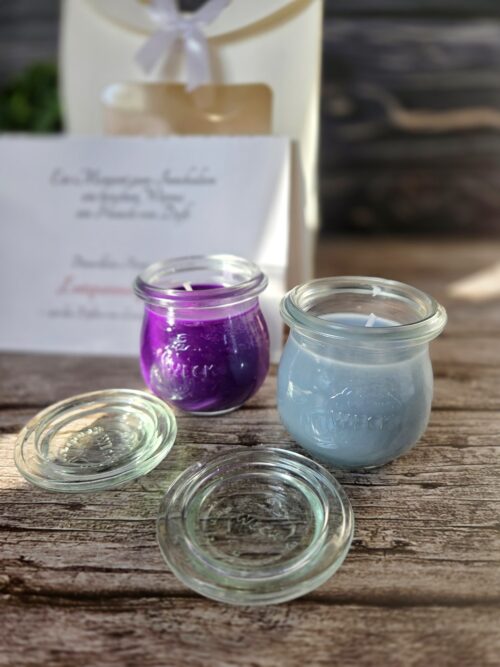 Diese kleinen Gläser mit Deckel sind total süß und können nach dem Abbrennen weiter verwendet werden. Ihr könnt z. B. Cremes abfüllen oder Schmuck drin aufbewahren.