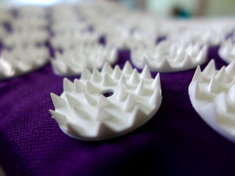 Die Matte ist 40 x 60 cm groß. Auf ihr sind 6534 Spitzen gleichmäßig verteilt.